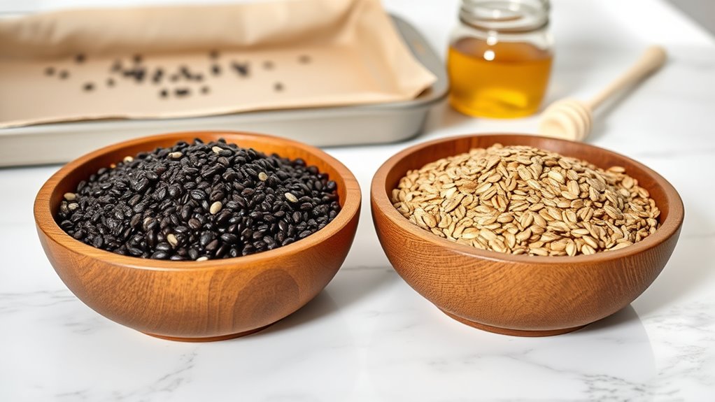 When choosing between chia and flax seeds for baking, consider their unique benefits and flavors. Did you know that chia seeds contain about 5 grams of fiber per tablespoon, nearly double that of flax? Incorporate them into your recipes to boost nutrition and texture. Whether you prefer chia’s gel-like consistency or flax’s nutty flavor, both seeds can elevate your baked goods. Experiment and find what works best for your taste and health goals.
