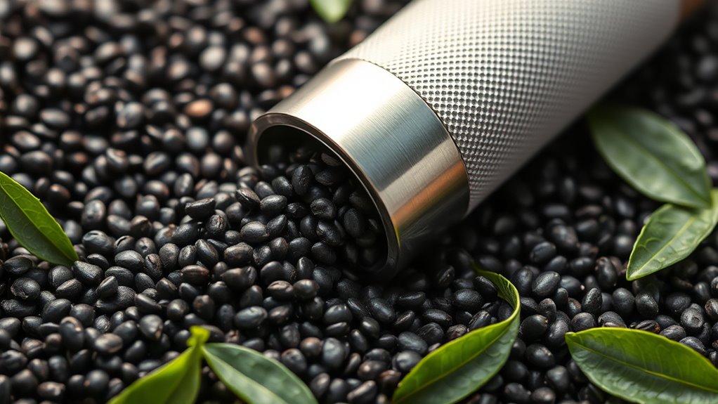 Matching your grinder to the seeds you plan to grind is essential for achieving the best results. Small seeds like chia, flax, and fennel need fine to medium settings to release their full nutrition. Make sure the grinder can handle larger or harder seeds without leaving whole pieces, which indicates sufficient power and durable blades or ceramic parts. The grinding mechanism should be gentle enough for delicate seeds, preserving their nutrients, so ceramic conical grinders or stainless steel blades are ideal. Look for adjustable settings to customize coarseness or fineness for different seeds. Also, consider the size and capacity of the grinder to match your typical batch size, ensuring convenience and efficiency during your grinding sessions.