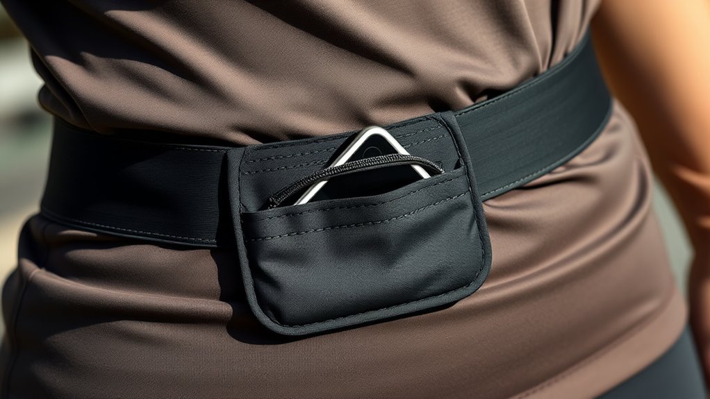 Ever wonder how to stay safe during early morning or evening runs? Visibility is key. Look for running belts with reflective strips and accents that catch light from cars, bikes, or other runners. Bright colors and high-contrast designs also boost your presence in low-light conditions, making you more noticeable during dawn, dusk, or nighttime. Reflective zippers or piping added along the belt help others spot you from a distance, reducing the risk of accidents. For maximum safety, choose a belt with multiple reflective elements, ensuring 360-degree visibility regardless of your position or lighting changes. These features are especially essential when running in urban or poorly lit areas, where being seen can make all the difference in keeping you safe and secure.