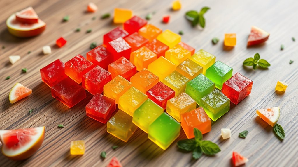 Imagine a burst of fresh fruit flavor brightening your day—I can tell you that many vegan energy chews avoid artificial sweeteners and preservatives. Instead, they often use natural ingredients like fruit extracts, ensuring a cleaner, more wholesome energy boost. However, it’s always wise to check labels, as some brands might include additives. I recommend choosing those with transparent ingredient lists to enjoy a natural, guilt-free pick-me-up.