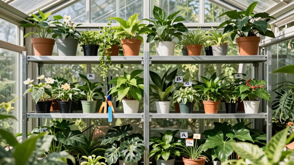 Organized greenhouse shelves boost efficiency and support successful plant propagation.