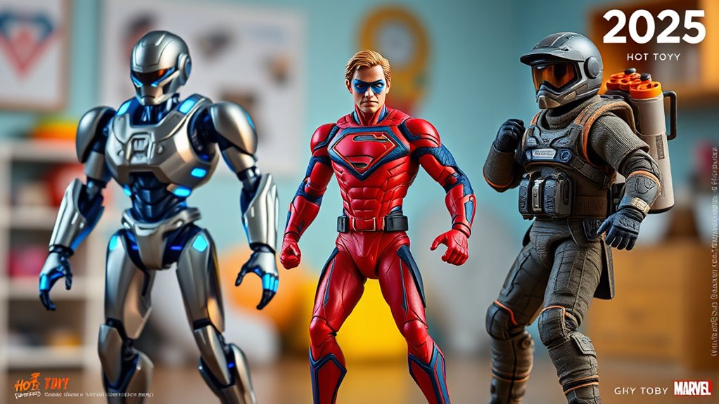These toys are designed to withstand rough play, but their durability varies depending on the material and design. I’ve found that high-quality Hot Toys, especially those made from sturdy plastic and reinforced joints, hold up well over time. However, with very aggressive handling, some parts might loosen or break. I recommend supervising play and encouraging gentle handling to guarantee your child’s toys stay in great shape longer.
