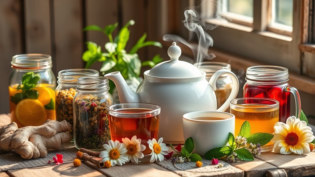 If you’re looking for the best IBS relief teas that naturally soothe your gut, there are several great options like organic peppermint and ginger teas, herbal blends with chamomile or fennel, and specialty formulas targeting digestive support. Many are caffeine-free, non-GMO, and suitable for daily use. They promote digestion, reduce bloating, and calm inflammation. Want to find out which teas work best for you? Keep going for detailed options and tips.