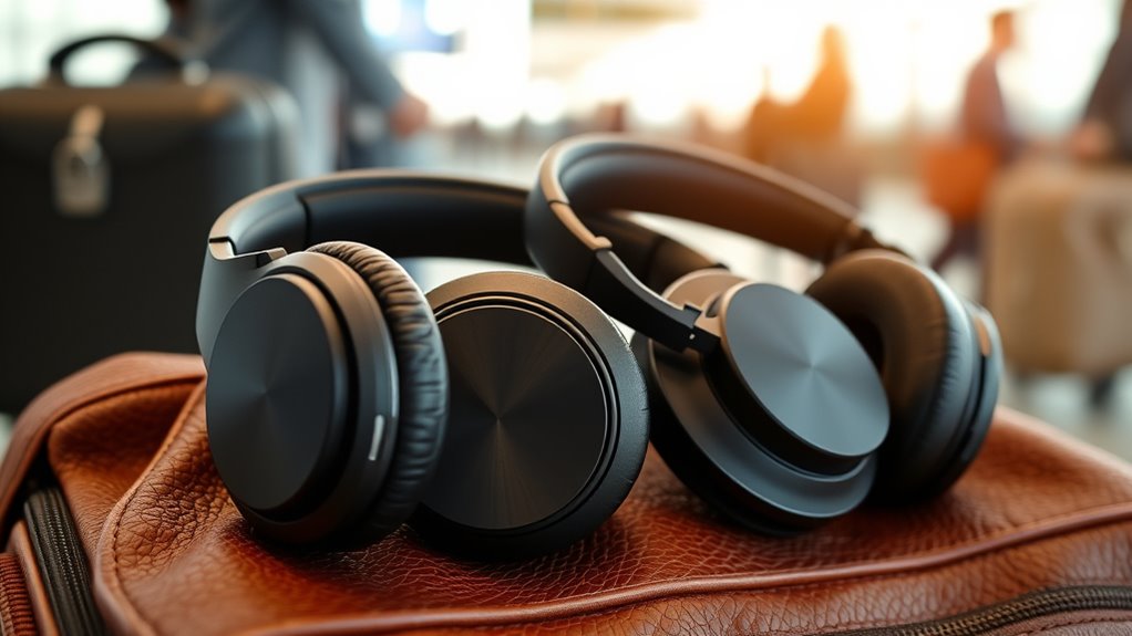 When choosing noise-canceling headphones for travel, I believe they’re more than just gadgets—they’re gateways to peace. If we think about it, noise cancellation isn’t just about silence; it’s about reclaiming our calm amidst chaos. By investing in quality, we’re not just blocking out sound—we’re creating a personal refuge. So, pick wisely, and let these headphones remind you that sometimes, silence truly is golden, even on the busiest journeys.