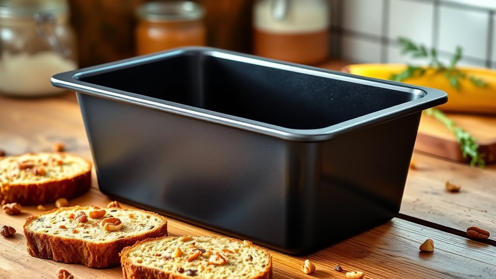 Choosing the right nonstick loaf pan can transform your baking from ordinary to extraordinary. Whether you prefer the sleek aluminum of USA Pan or the versatile glass of Razab, each offers unique benefits. It’s like having a trusted partner—some are sturdy and reliable, others versatile and transparent. Ultimately, your perfect loaf pan balances durability with ease of use, proving that even simple tools can elevate your baking game and make every loaf a masterpiece.
