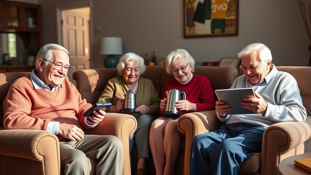Choosing practical gifts for elderly parents hinges on their ease of use, as many may have limited vision or dexterity. I look for items with large, clearly labeled controls or buttons, making operation straightforward. Devices with simple, intuitive interfaces are essential, so minimal setup or technical know-how is needed. Ergonomic designs matter too—they reduce strain and are easy to handle or operate. I also prioritize products with automatic features, like auto shut-off or preset modes, to lessen manual adjustments. Ensuring the gift is lightweight makes it easier for them to carry or move around, reducing physical effort. These considerations help me select gifts that are user-friendly, encouraging independence and confidence in daily tasks.