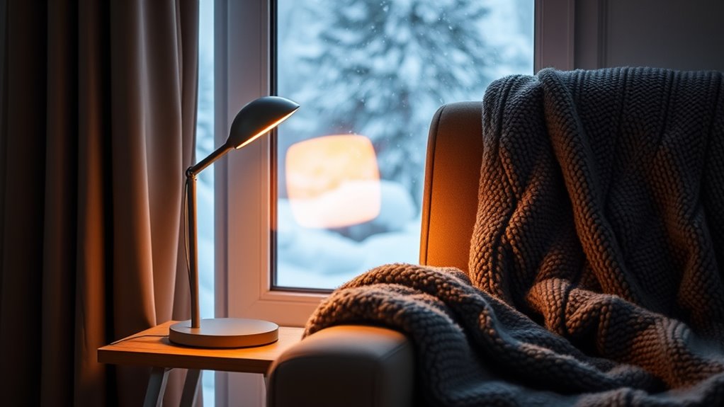 If you’re looking to beat winter blues, I recommend checking out some of the best sad lamps that mimic natural sunlight. These lamps offer 10,000 lux brightness, adjustable color temperatures, and features like timers and dimming for personalized therapy. Many are UV-free, flicker-free, and stylish enough to blend into your space. If you keep going, you’ll discover the top options that can lift your mood and energize your day despite the gloom outside.