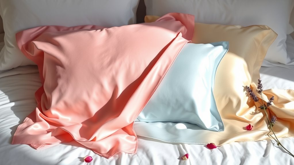 When choosing a silk pillowcase, I consider several key factors to guarantee I get the best benefits for my hair and skin. Things like material quality, thread count, size, and care instructions all matter in making a smart choice. Let’s explore how these points can help you find the perfect silk pillowcase for your needs.