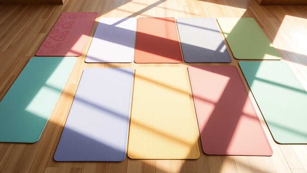 I recommend a yoga mat that’s around 5 to 6mm thick for ideal joint support. Thicker mats provide extra cushioning, which helps protect your knees, wrists, and hips during poses, especially if you have sensitive joints. I personally find this thickness comfortable without being too bulky. If you practice more high-impact or restorative yoga, you might prefer even thicker mats, but for most beginners, 5-6mm strikes a great balance.