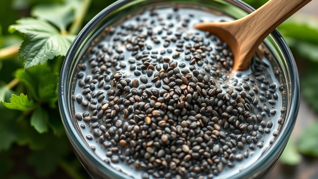To maximize the benefits, try soaking a tablespoon of chia in a cup of water or plant-based milk about 15-20 minutes before your meal. The resulting chia gel can be flavored with a splash of vanilla, a drizzle of honey, or some fresh berries for added taste. This pre-meal snack helps fill your stomach, reducing the urge to overeat when it’s time to sit down for your main course. The nutritional benefits of chia extend beyond appetite control; they support heart health, aid digestion, and provide antioxidants that combat inflammation. Making chia loading a part of your routine is simple and effective, especially once you experiment with different recipe ideas to keep things interesting. Whether in smoothies, puddings, or sprinkled over your favorite dishes, chia seeds are a versatile, healthful addition that can truly make a difference in your eating habits and overall well-being. Additionally, understanding the nutritional profile of chia seeds can motivate you to incorporate them regularly for maximum health benefits.