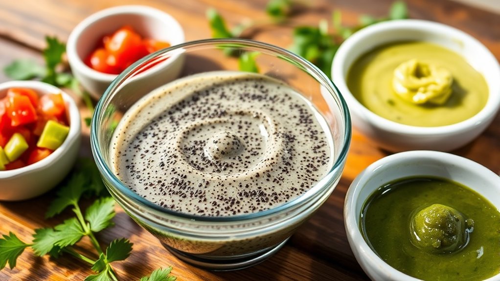 Recipe variations are nearly endless when it comes to chia seed dressings and dips. You might experiment with different flavor profiles by incorporating ingredients like tahini, Greek yogurt, or coconut milk. For a tangy, spicy kick, add hot sauce or grated ginger. Sweet versions are also popular—mix chia seeds with fruit purees, such as mango or strawberry, for a fruity, nutritious dip. You can also create layered dressings by combining chia seeds with herbs and spices, providing both depth of flavor and nutritional perks. These variations make chia seed dressings adaptable for salads, wraps, grain bowls, or even as a topping for roasted vegetables.