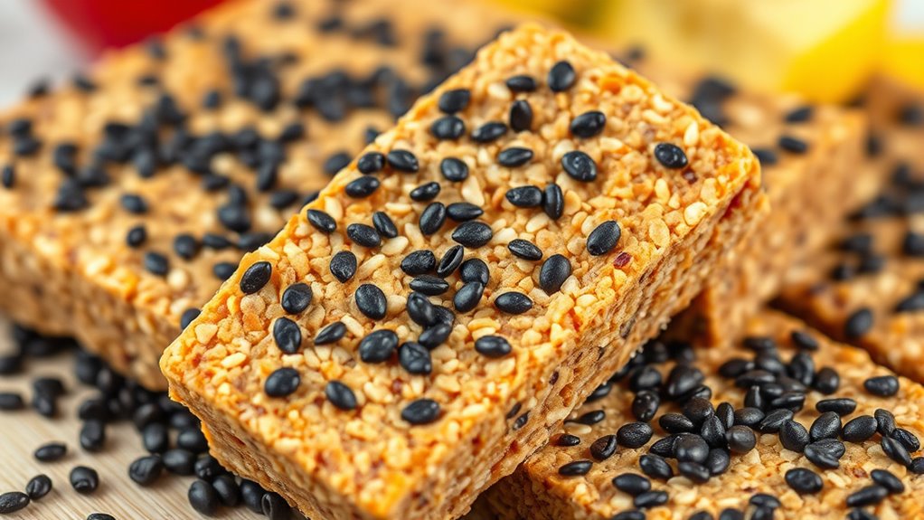 Using chia seeds in your gluten-free energy bars not only enhances their nutritional profile but also improves their texture. The gel formed by soaked seeds helps retain moisture, preventing your bars from becoming dry or crumbly. This makes them ideal for on-the-go snacking, as they’ll stay fresh longer and be more enjoyable to eat. Plus, the high fiber content in chia seeds supports digestion and provides sustained energy, so you feel full and energized for longer periods. Their natural thickening properties also mean you can reduce the amount of added binders or artificial ingredients, keeping your bars clean and wholesome. Additionally, because of their digestive health benefits, chia seeds contribute to overall gut wellness, making your energy bars even more nourishing.