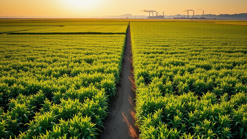 You might be surprised to learn that the carbon footprint from chia seed farming is relatively low compared to other crops. Farm emissions mainly come from machinery use and transportation, but sustainable practices help minimize these. If you’re concerned about your environmental impact, choosing chia seeds grown with eco-friendly methods can reduce your overall carbon footprint. Overall, chia cultivation’s contribution to greenhouse gases remains modest, making it an environmentally conscious choice.