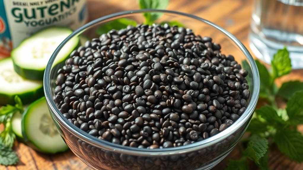 If you’re sensitive to gluten, chia seeds can help improve your gut health quickly. Their high soluble fiber forms a gel that supports digestion, regulates bowel movements, and soothes inflammation. They also promote healthy gut bacteria, which is key for microbiome balance. Incorporating chia seeds into your diet can reduce bloating, improve digestion, and support long-term gut wellness. Keep exploring how chia seeds can become a simple yet effective part of your gluten-sensitive routine.