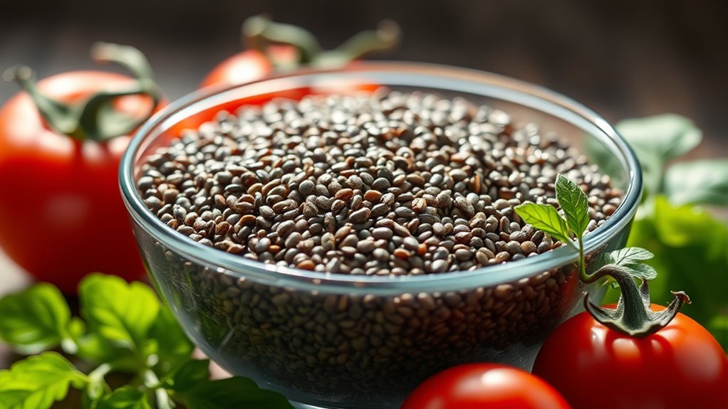 Think of chia seeds as tiny guardians patrolling your bloodstream, quietly working to lower cholesterol and keep your blood pressure in check. As they weave through your arteries like vigilant sentinels, they help prevent blockages and promote a healthier heart. By adding these small warriors to your diet, you’re strengthening your body’s fortress from within. Embrace chia seeds, and let them be your trusty allies in the ongoing battle for heart health.