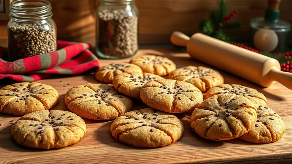 Incorporating chia seeds is straightforward: add a couple of tablespoons to your cookie dough before shaping and baking. They absorb moisture and swell, giving your cookies a little extra structure and a pleasant crunch. Plus, chia seeds are packed with omega-3 fatty acids, antioxidants, and fiber, making your treats more nourishing. When combined with sugar alternatives and gluten-free flours, they create a healthier, more mindful version of a holiday classic.