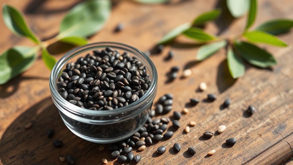 Imagine adding a secret weapon to your daily routine, like a knight’s armor—chia seeds are your versatile ally. You can sprinkle them on smoothie enhancements or use them as breakfast toppings. Mix them into yogurt, oatmeal, or baked goods for a subtle crunch and omega-3 boost. Just soak them in water or milk first for easier digestion. This simple step guarantees you enjoy their health benefits effortlessly every day.