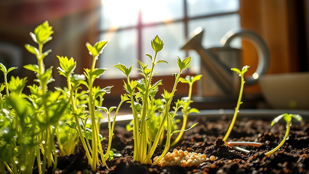 To keep your chia plant thriving, remember that proper watering, sunlight, and fertilization are key. Think of it like a small, green friend that needs just the right care to flourish. If you give it consistent attention, you’ll see it grow lush and healthy. Visualize a tiny garden where each element works together—water keeps it lively, sunlight energizes it, and nutrients feed its growth. With patience and care, your chia plant will reward you with vibrant greenery.