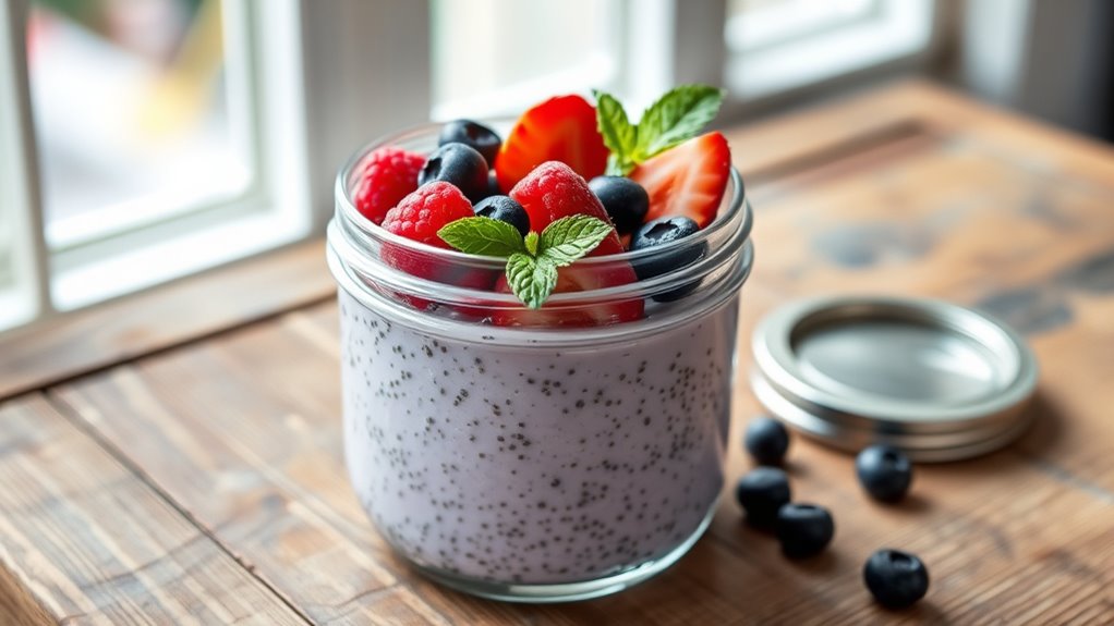 One of the best parts about overnight chia pudding is its ability to adapt to your taste preferences through flavor variations. You can keep things simple with just vanilla or cinnamon, or get creative with toppings and mix-ins. Fresh berries, sliced bananas, or a drizzle of honey add natural sweetness and antioxidants, enhancing both flavor and nutritional value. For a more decadent twist, you might incorporate cocoa powder or a spoonful of nut butter. These variations not only keep your breakfast interesting but also support a balanced diet, helping you stay on track with your weight loss plan.