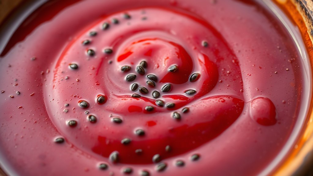 You might find that fruit-based sauces or delicate emulsions don’t work well with chia seeds. Imagine pouring a vibrant berry sauce or a silky vinaigrette, only to see chia seeds swell and disrupt the smooth texture. These sauces require a gentle touch, and the gelatinous texture from chia seeds can overpower their subtle flavors. Stick with traditional thickeners for those, or experiment carefully to avoid unwanted textures.