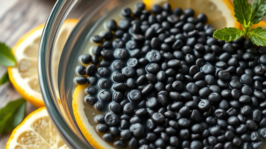 To relieve constipation with chia seeds, start by soaking 1-2 tablespoons in water or your favorite beverage until they form a gel. This helps increase moisture and bulk in your stool, making it easier to pass. Be sure to drink plenty of water throughout the day to support fiber effectiveness. Incorporating chia seeds gradually and maintaining good hydration can improve your digestion. Keep exploring for more tips to boost your gut health naturally.