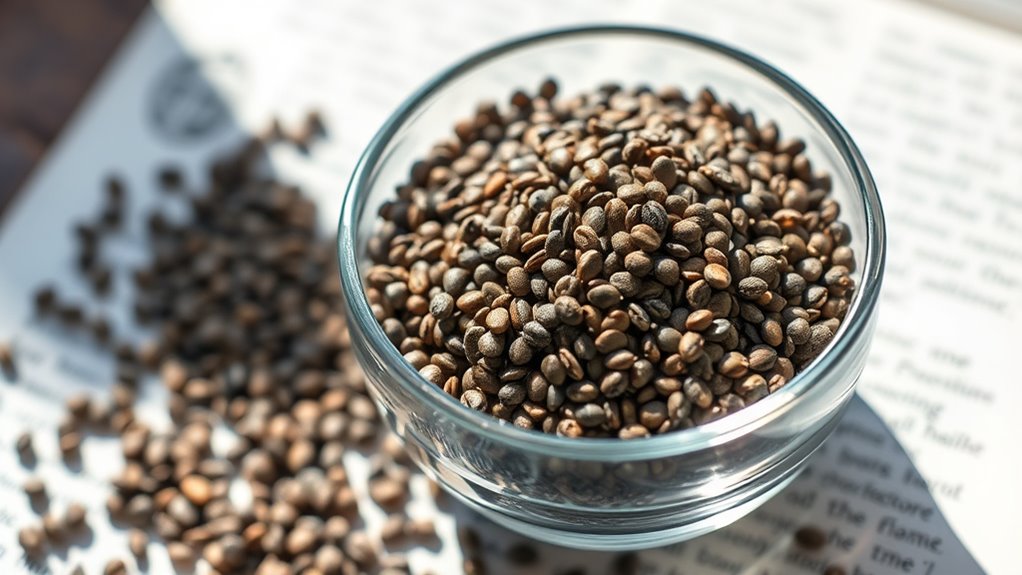 Chia seeds contain antioxidants and omega-3s that may help support prostate health by reducing inflammation and neutralizing harmful free radicals. Although there’s no conclusive evidence that they directly prevent prostate cancer, their nutritional profile suggests they can be a beneficial part of a balanced diet for overall prostate well-being. Incorporating chia seeds into your meals offers an easy way to boost your intake of protective compounds—more insights await to reveal how they fit into your health strategy.