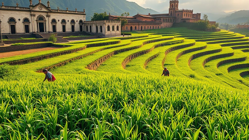 While Spanish colonization introduced new crops and disrupted traditional chia farming, it also paved the way for global awareness of chia’s health benefits. You see, despite the upheaval, chia seeds endured as a symbol of resilience—standing tall amid change. Today, as you enjoy chia’s nutritional power, remember how this tiny seed’s story is marked by both conquest and continuity, reminding us that even in chaos, nature’s gifts can persist and thrive.