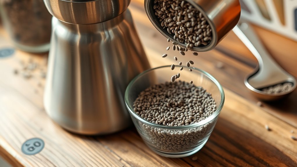 Imagine revealing chia’s full potential—should you soak before or after grinding? Soaking benefits your digestion, making nutrients easier to absorb, while grinding methods like using a coffee grinder or blender can quickly release their omega-3s. You can soak seeds first, then grind for a smoother texture, or grind first for convenience. Either way, both methods maximize chia’s health benefits, so choose what suits your routine best.